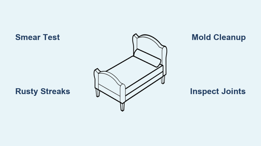 You wake up, stretch, and notice something unsettling—dark, ink-like spots marring the wooden slats under your mattress. Your heart skips
