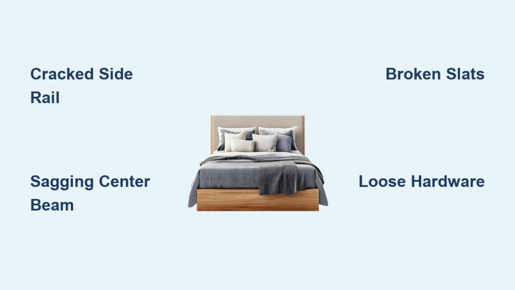 You wake up to a jarring crack, followed by your mattress sinking toward the floor. A broken bed frame isn’t